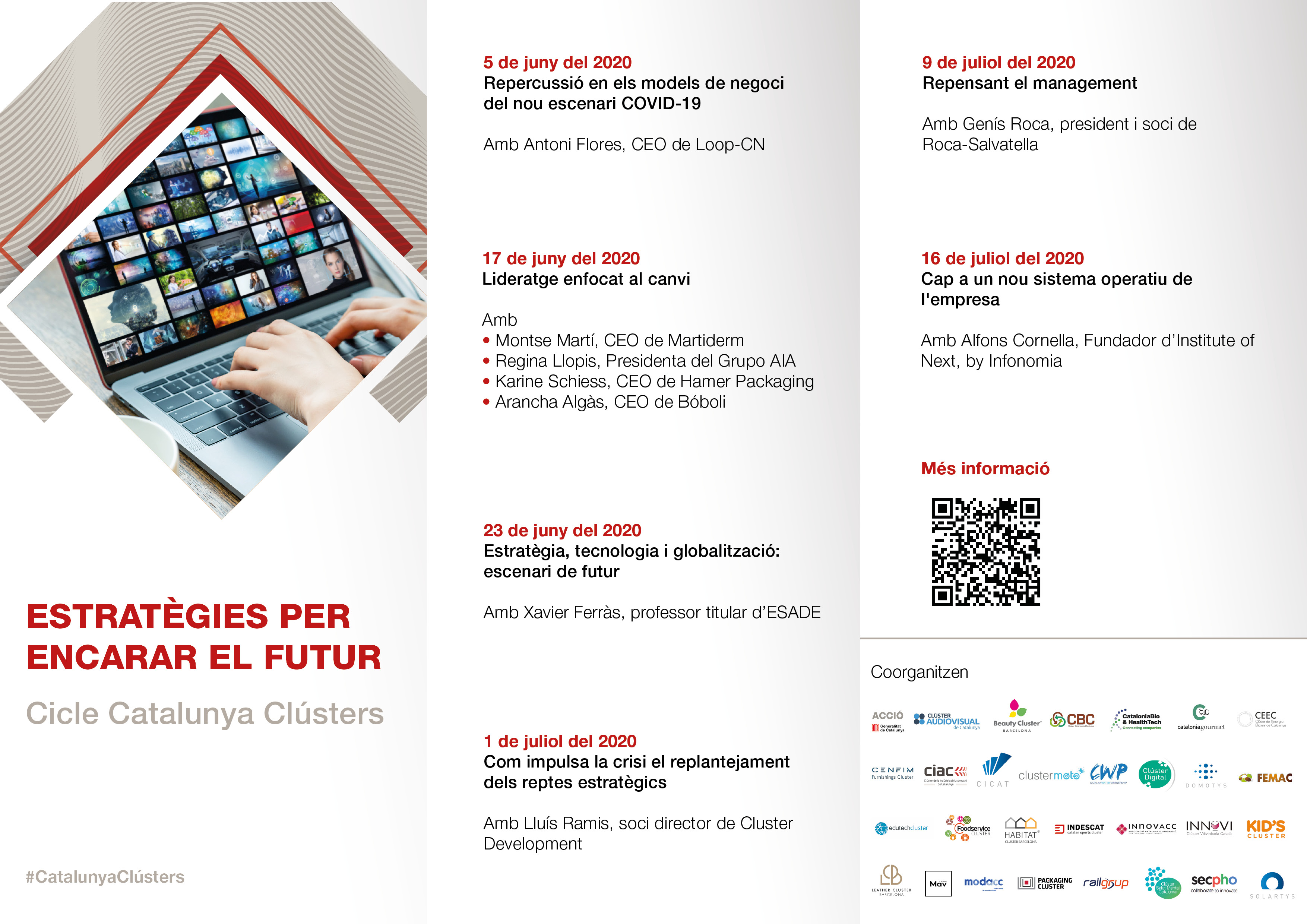 Aquest seminari és el primer del Cicle Catalunya Clústers “ESTRATÈGIES PER ENCARAR EL FUTUR”, organitzat per ACCIÓ i pels 29 clústers del programa Catalunya Clústers.